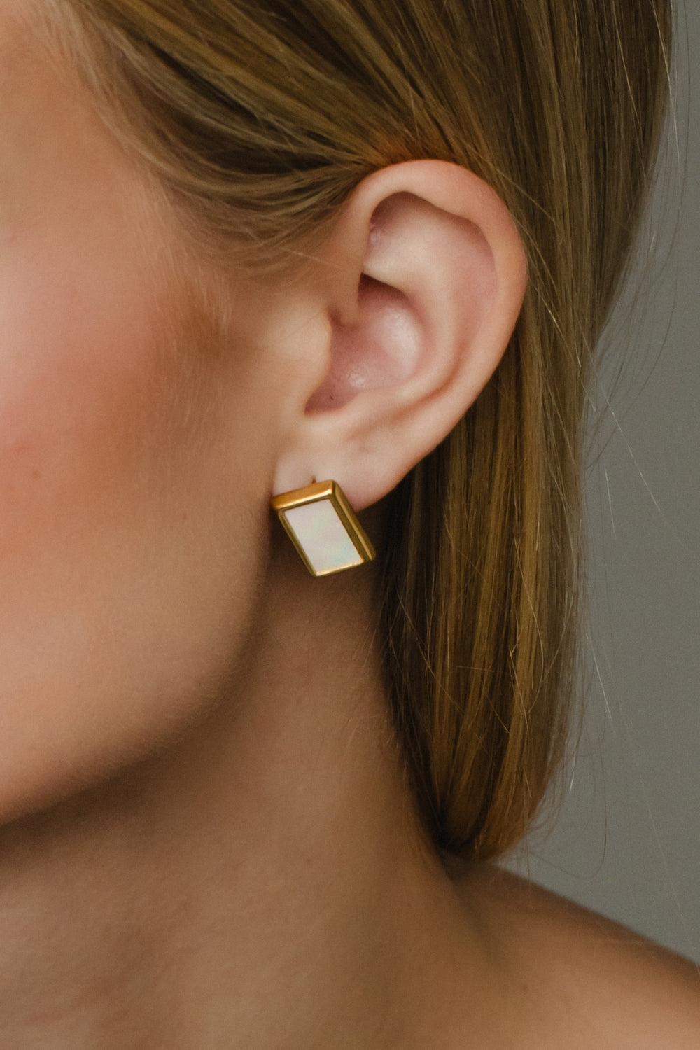 Luxe White & Gold Rectangle Stud Earrings