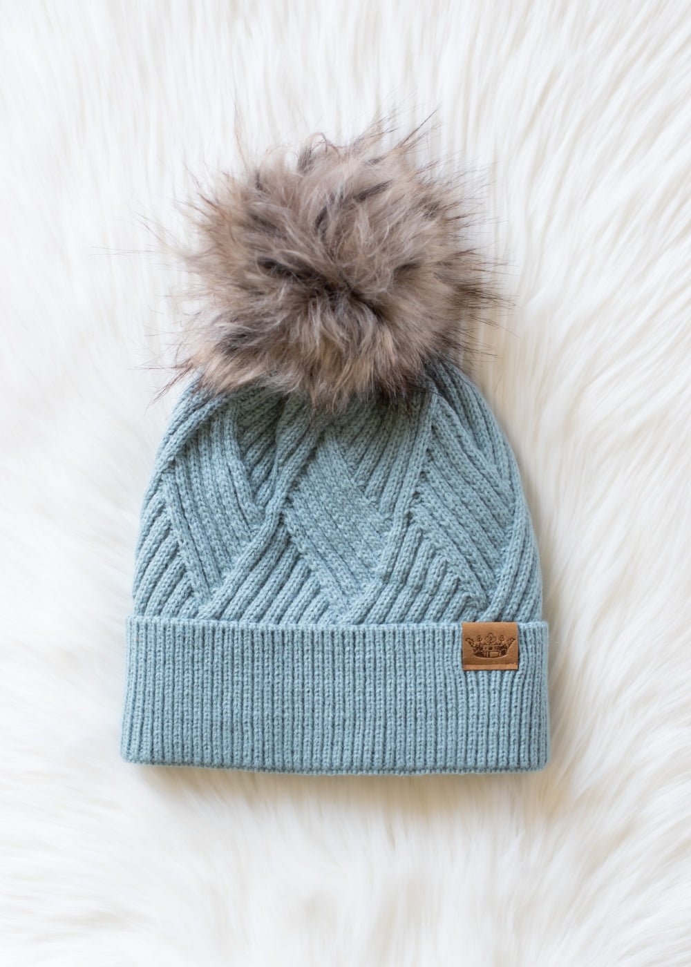 - Natural faux fur pom accent