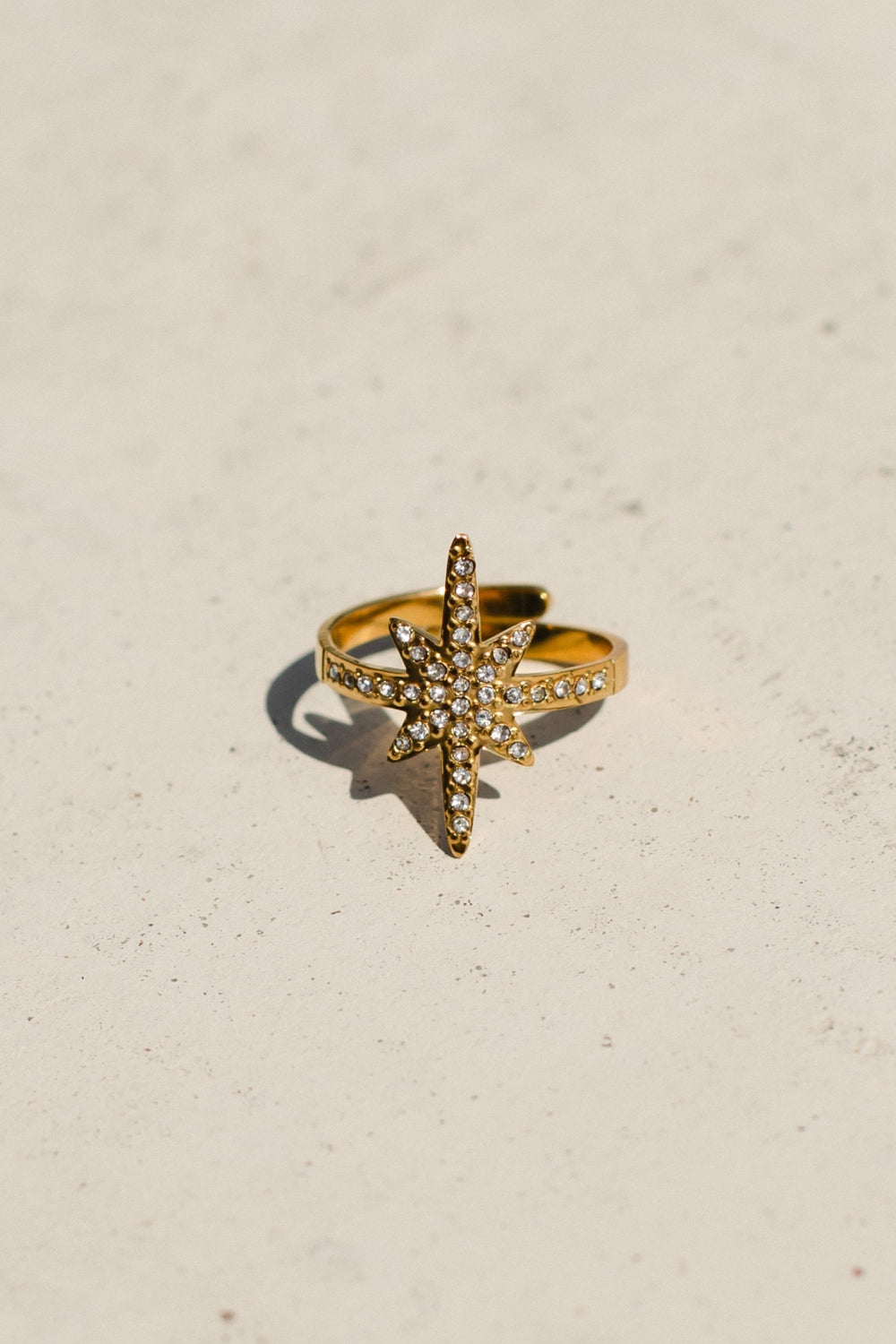 - Luxe 18K gold and rhinestone starburst ring