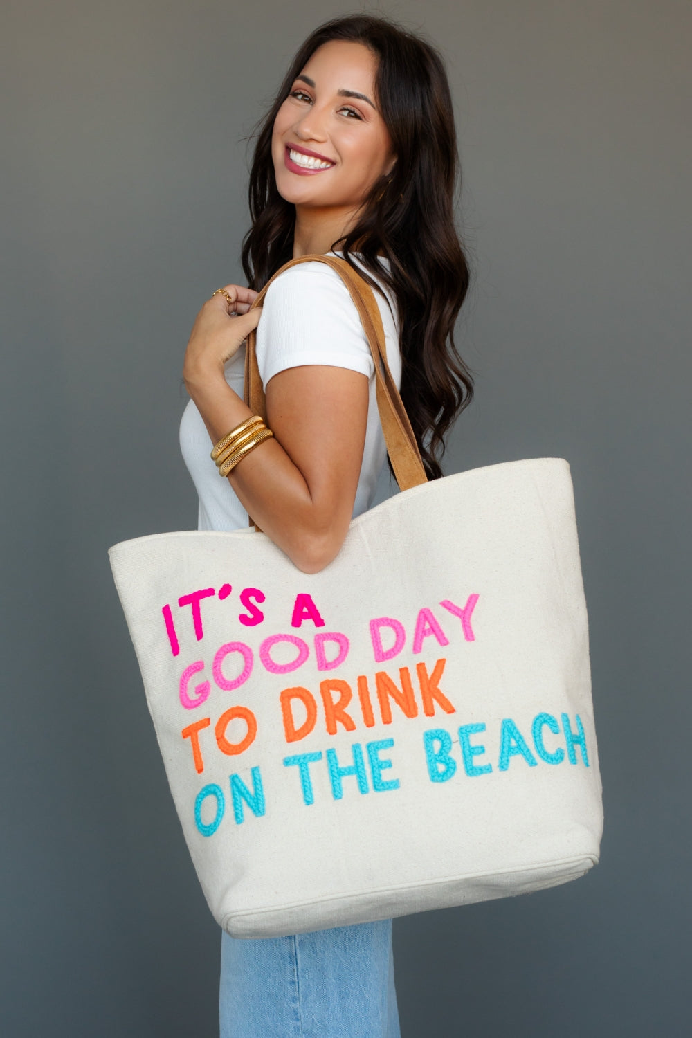 - Multicolored “It’s a Good Day to Drink on the Beach” text on the front