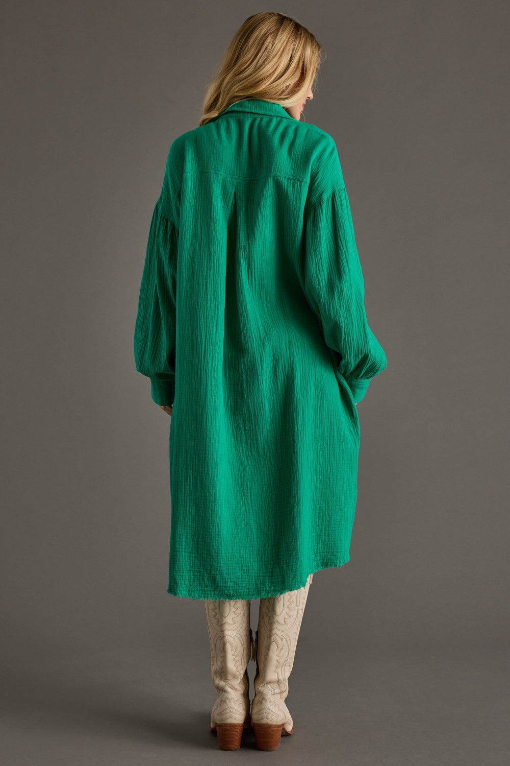 Kelly Green Gauze Long Button Up
