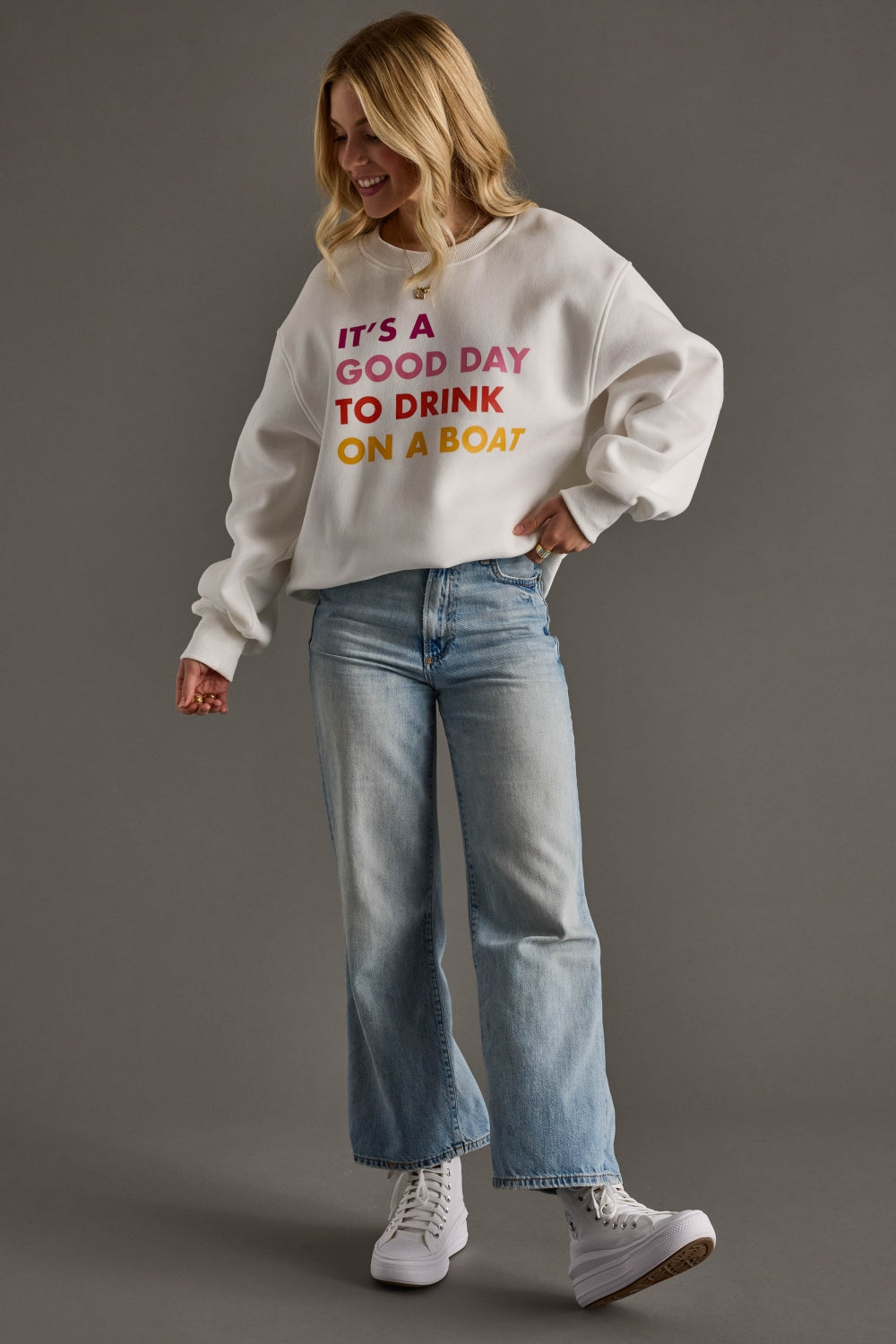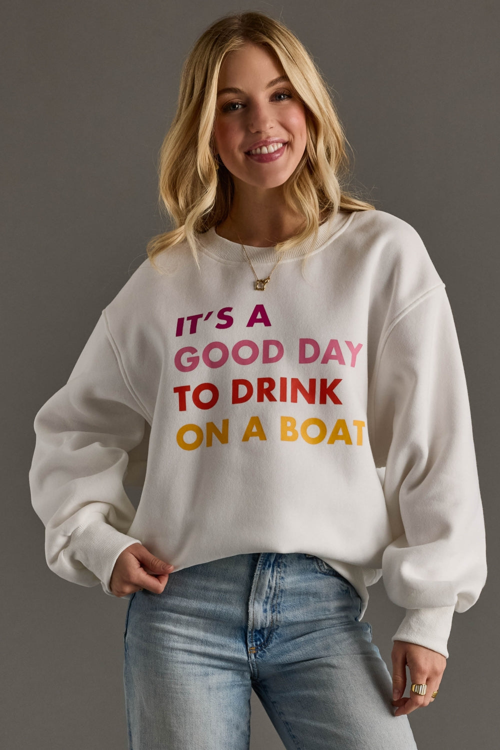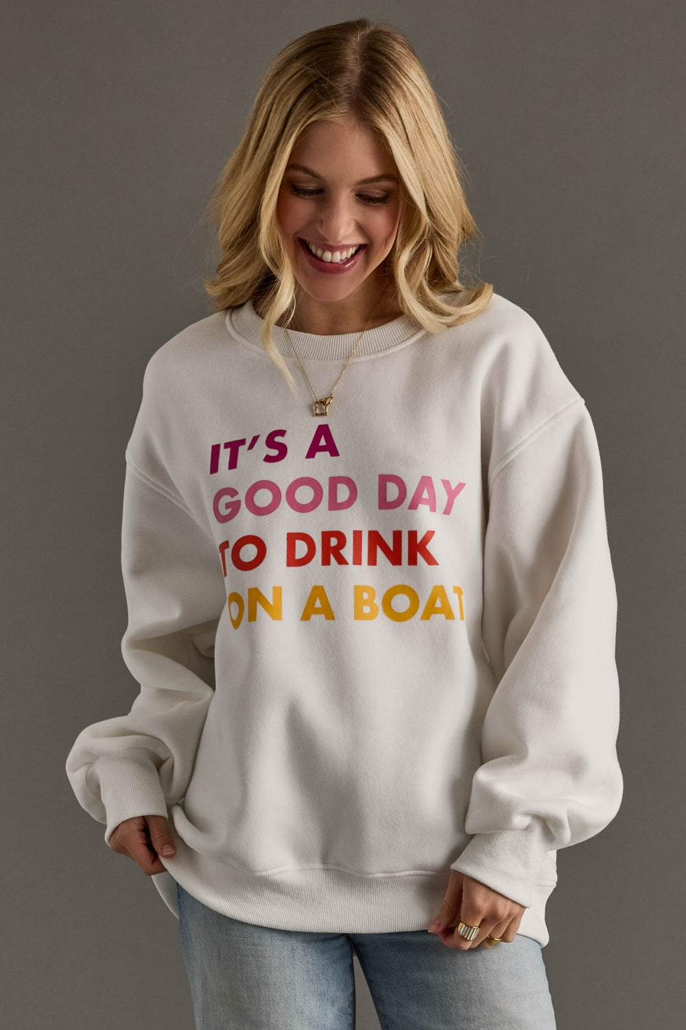 - Multicolored “It’s a Good Day to Drink on a Boat” print on the front