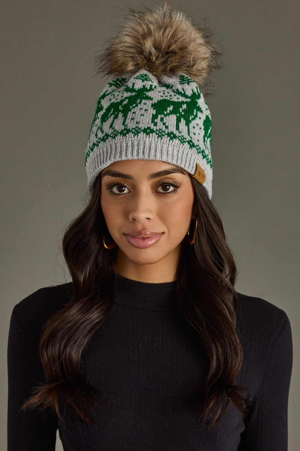 - Light gray knit pom hat