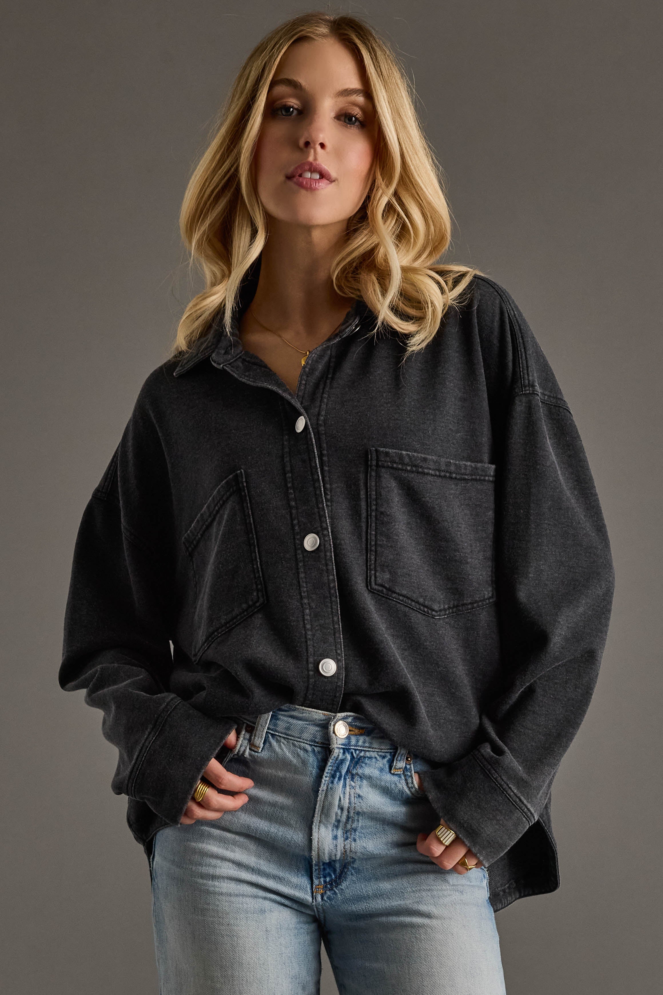 Black Washed Soft Button Up