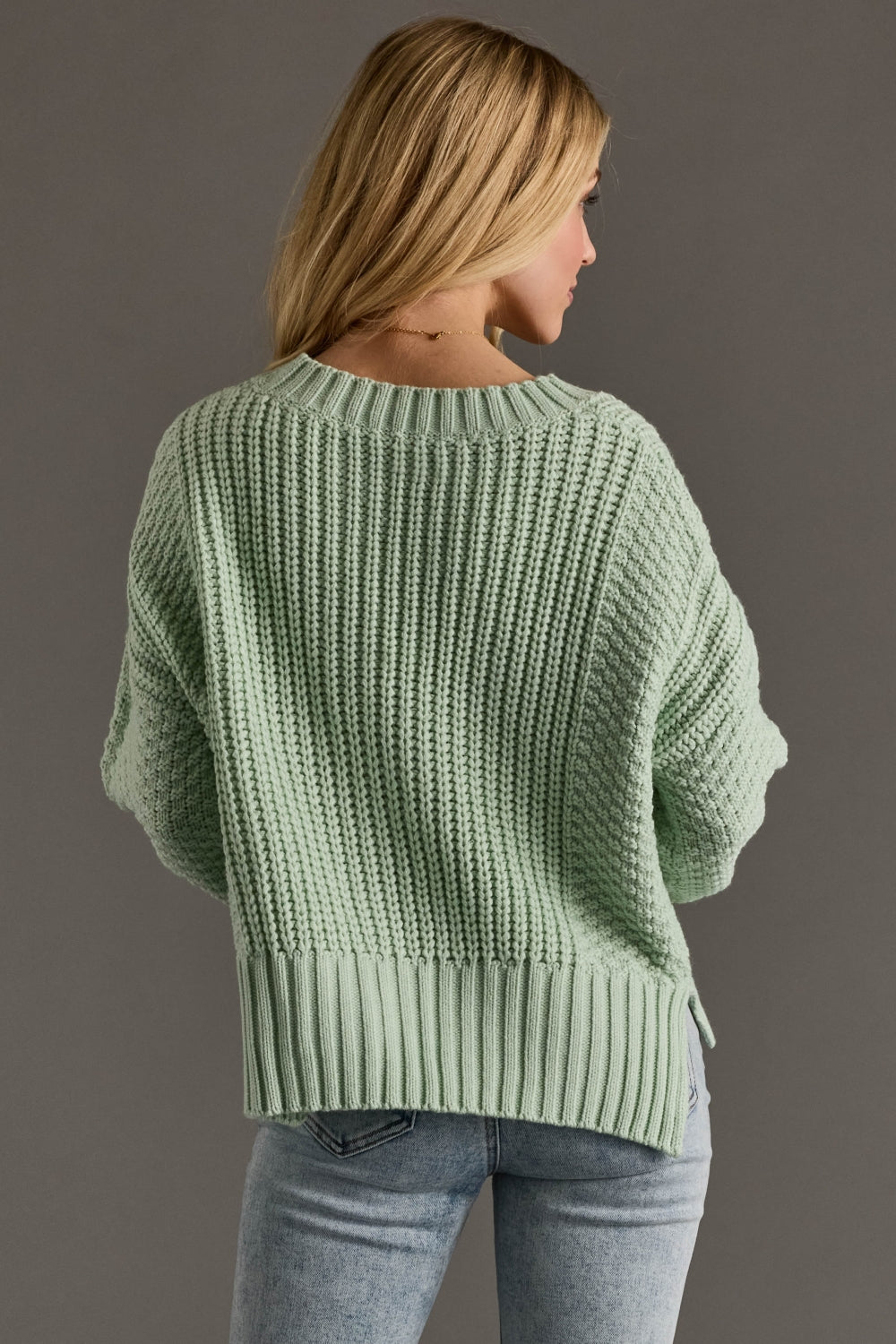 - Oversized fit with textured knit design and cropped length